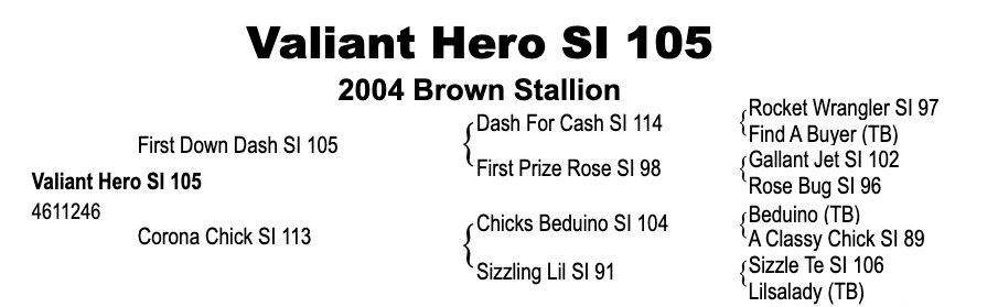 CORONA CHICK SI 113, by Chicks Beduino. AQHA Race Broodmare Of The Year, AQHA Supreme Race Horse, AQHA Hall of Fame, Champion Racing 2-Year-Old, 15 race wins, $591,326, won Ed Burke Memorial Futurity [G1], Dash For Cash Futurity [G1], Kindergarten Futurity [G1], Governor’s Cup Derby [R] [G1], Governor’s Cup Futurity [R] [G2], 2nd Southern California Derby [G2], finalist Bay Meadows Futurity [G1], qualified La Primera Del Ano Derby [G1], Champion Racing 2-Year-Old Filly, Champion Racing 3-Year-Old Filly, Racing Broodmare of the Year, AQHA Racing Dam of Distinction, NTR. Out of SIZZLING LIL ($7,212). Dam of 16 AQHA foals age 3 & over, including–