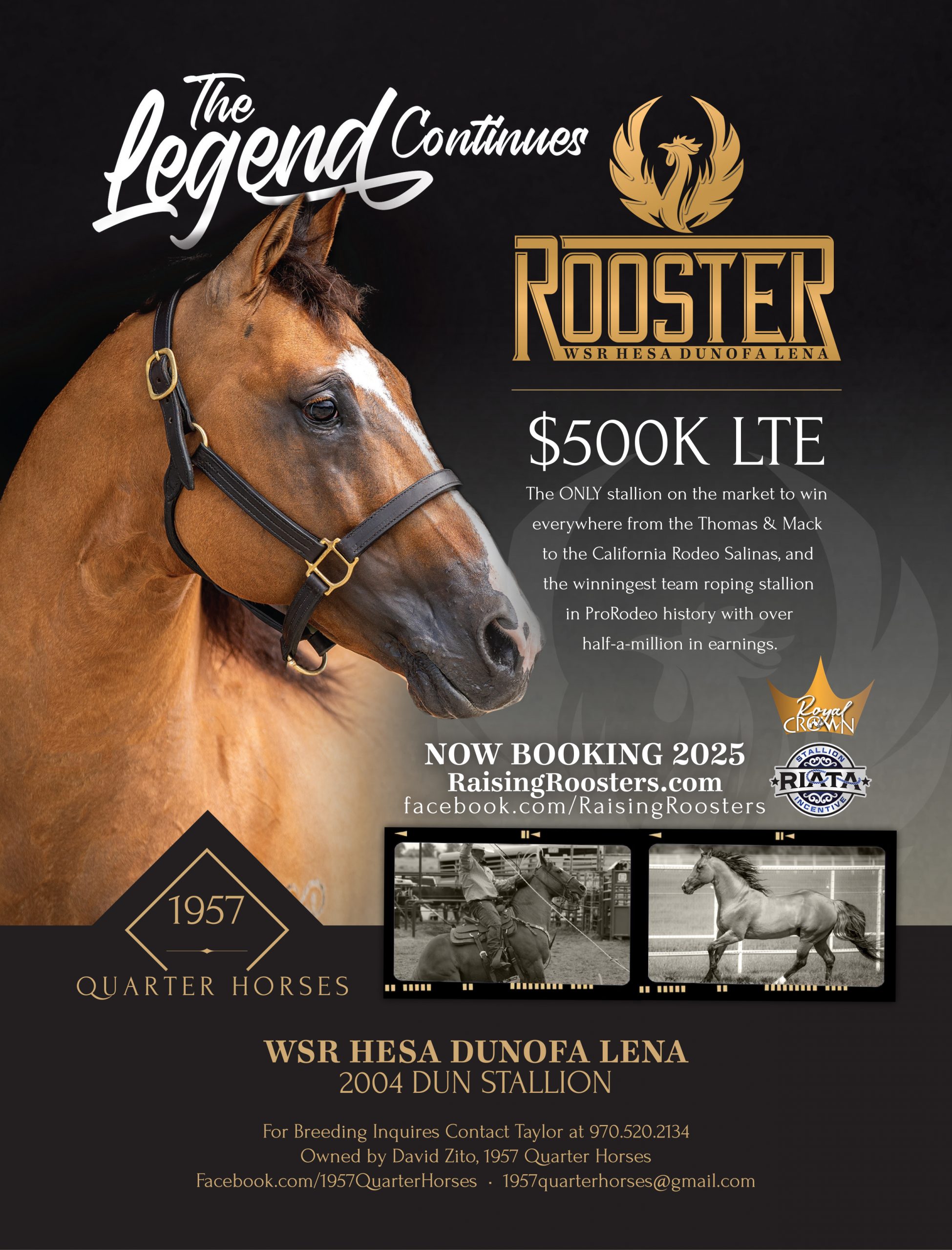 WSR Hesa Dunofa Lena—raised by Wes Adams’ iconic Western States Ranches—is the winningest rope horse stallion in the history of ProRodeo.